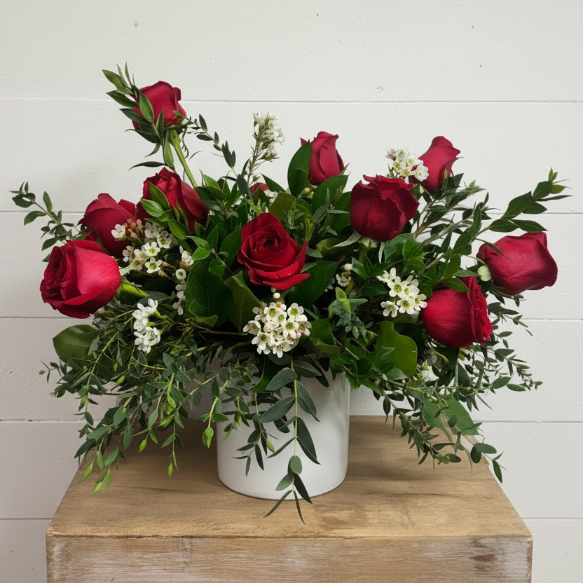 Looking for a modern take on a dozen roses? This one is for you! Elevate any occasion with our stylized dozen roses arrangement. Whether you’re celebrating an anniversary, birthday, Valentine’s Day, or just because, roses are the ultimate expression of love, and appreciation.